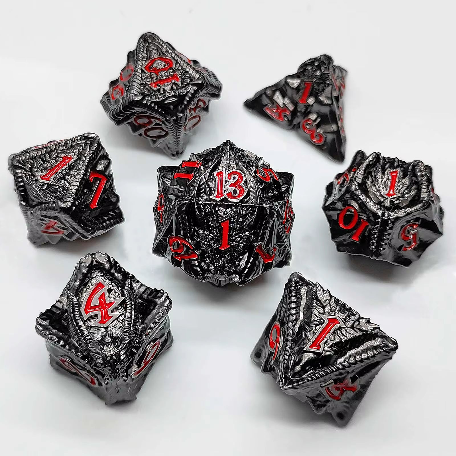 Iron Drake Metal Dice Set - Black & Red